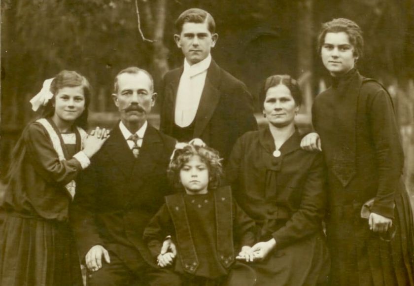 Růžena Krajzingová, roz. Škodová s dětmi Josefem a Marií.Rok odhadem
