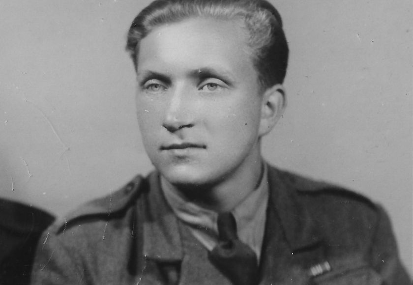 „Jdeme v rojnici ještě. Už jsme ostřelováni a musíme pochodovat dopředu a vlevo – jeden, druhý, třetí – tři tanky hoří. Z některých vyběhli tankisti a poschovávali se někde mimo. My jsme vnikli do lesa, náš třetí prapor, s tím pověstným hurááá, a nebyl žádný odpor. Takže my jsme postoupili tak půl kilometru do lesa, do té hloubky, a najednou, tak jak to předtím padalo na všech stranách, tady najednou naši vojáci začali padat jeden po druhém. Kukačky nechali Němci na stromech, nechali nás přejít a zezadu nás likvidovali. My nezkušení, já když jsem viděl, protože jsem byl velitelem družstva, co se v tom centru děje, tak jsem řekl: Kluci za mnou! Tam byl takový svah a dole byl potok. Skutálel jsem se až k potoku. I ti ostatní, než je někdo zranil.“ |