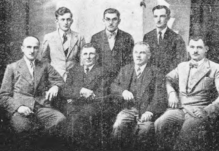 Zleva stojící J. V. Rejzek, K. Půlpytel, J. Foitík, sedící Vl. Ficek, A. Flengr, Josef Vlk a J. Rébl