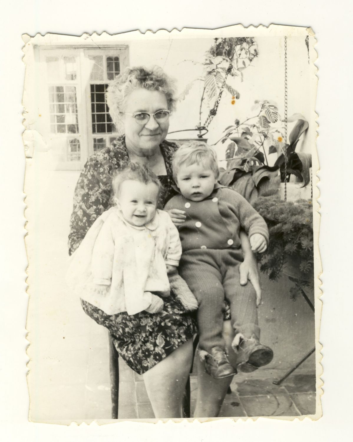Emilka de Tomé (roz.Hrdličková) s vnoučaty Josefkou a Hektorem. Podobenka zaslaná v dopise z Argentiny 4.2.1965