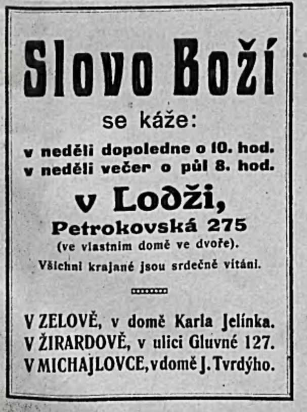 Rok: 1910 Zdroj: Komensky: kalendar pro cesky lid na Rusi 1910 R Inventární číslo: IV014258 Související obce:Lodž