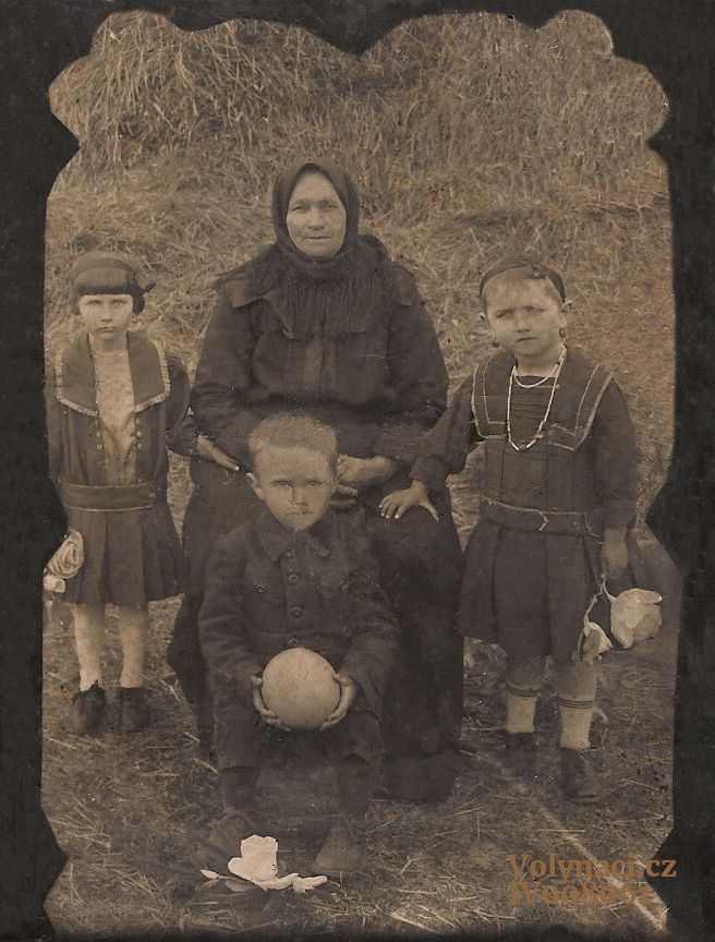 Rodina Novotných v Holovni České na Volyni. (datum odhadem)