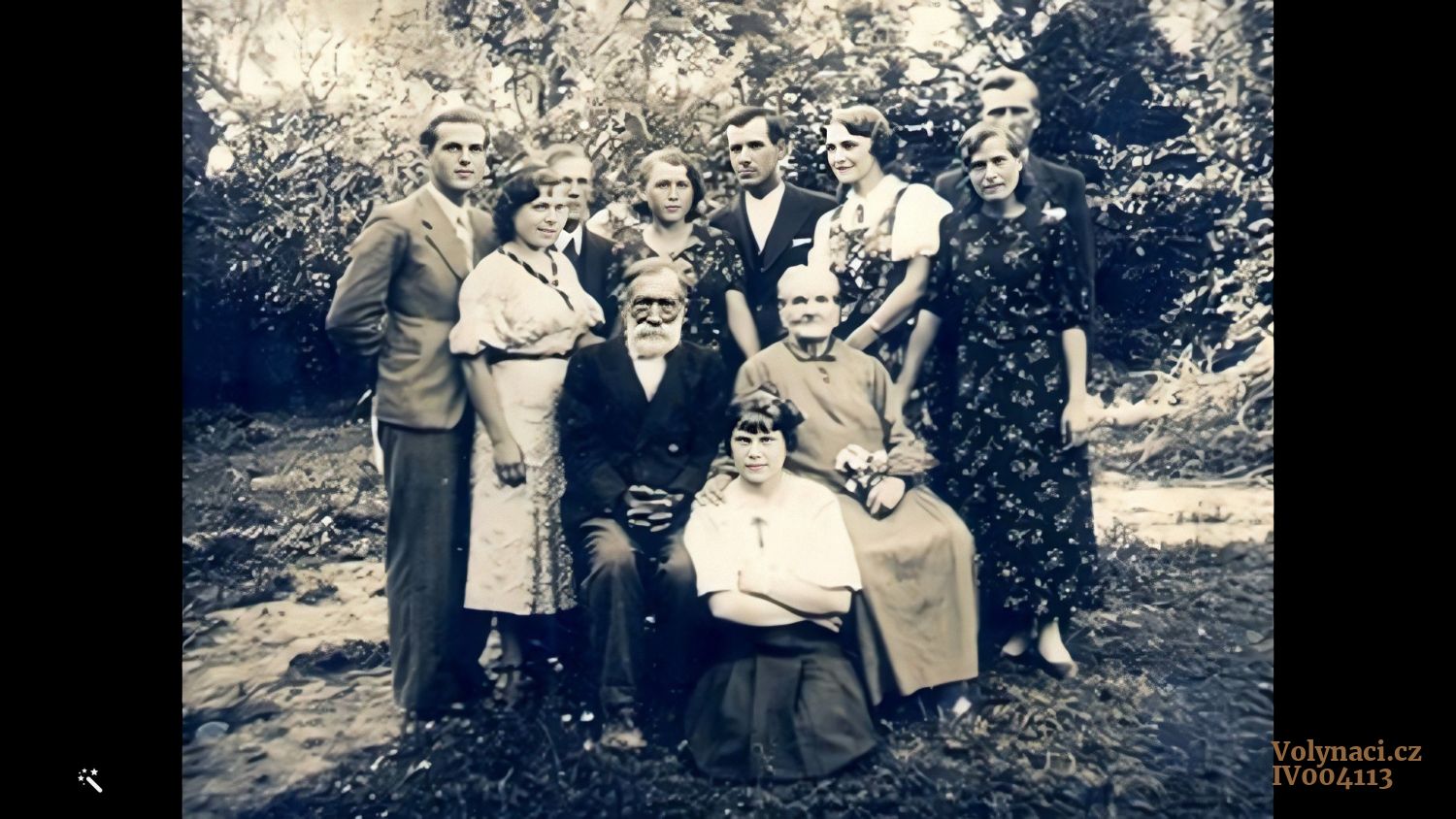 Uprostřed sedí Jan Křivka (1857 - 1939) s chotí Annou, roz. Peškovou (1862 - 1942), okolo nich jsou někteří jejich vnuci a vnučky: Zleva stojí Vladimír Naumenko, Evženie Křivková (dcera Václava), Josef Křivka (Syn Rudolfa), Josef Křivka (syn Josefa) s manželkou Ninou roz. Prajzentovou, Larissa Naumenková, Antonín Křivka (syn Rudolfa) se sestrou Olgou, dole nejmladší vnučka, Larisa (dcera Václava)