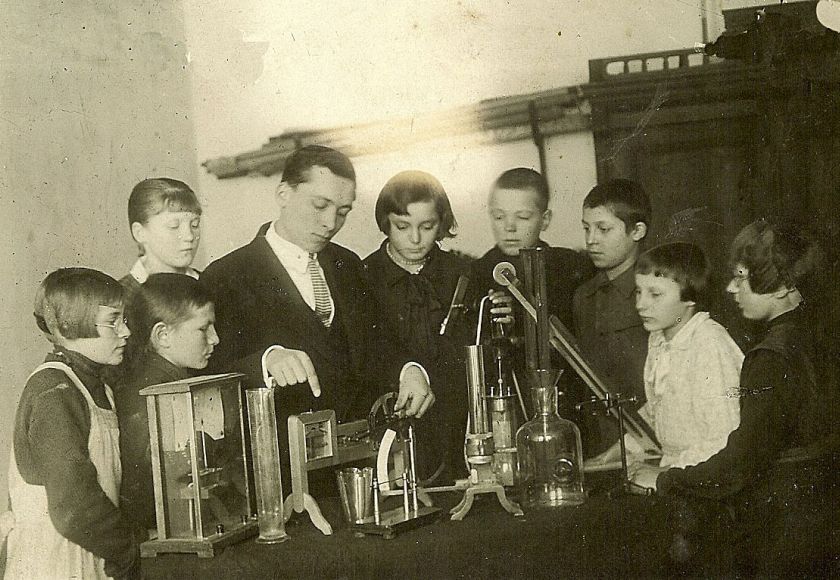 František Doleček a jeho žáci v Koziatynu. Letopocet odhadem, Rok: 1941, Zdroj: Archiv paní Komůrkové, Inventární číslo: IV008553