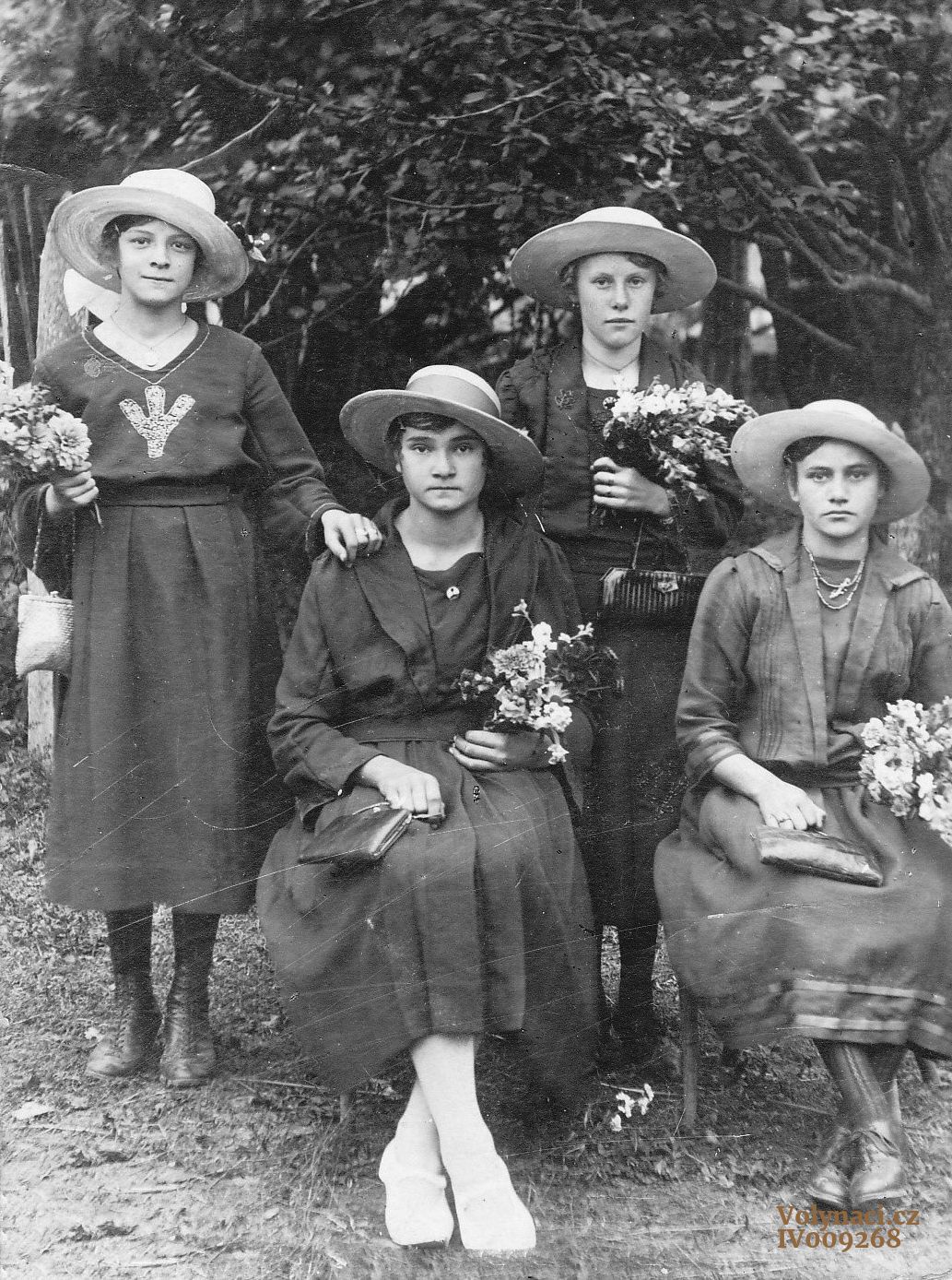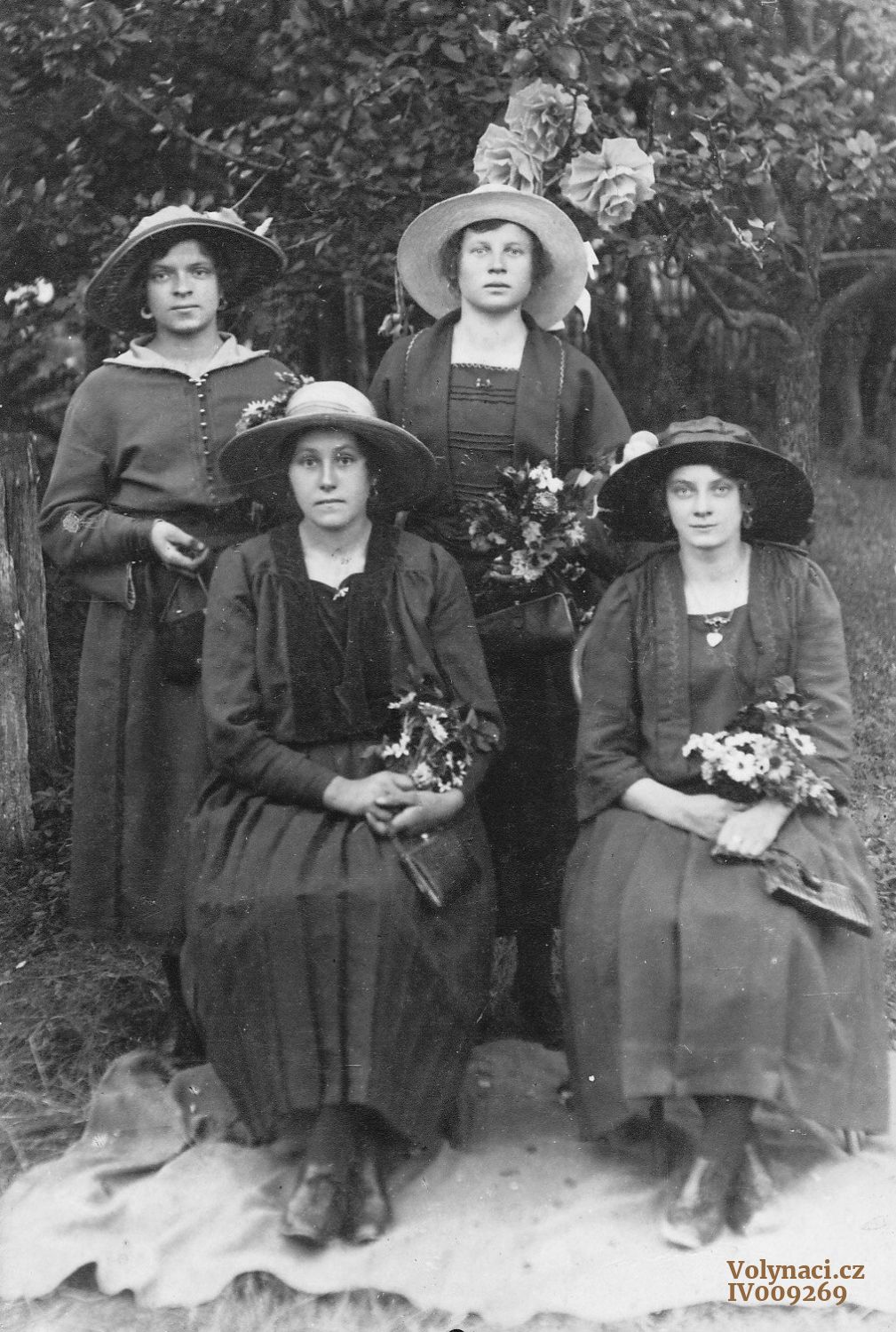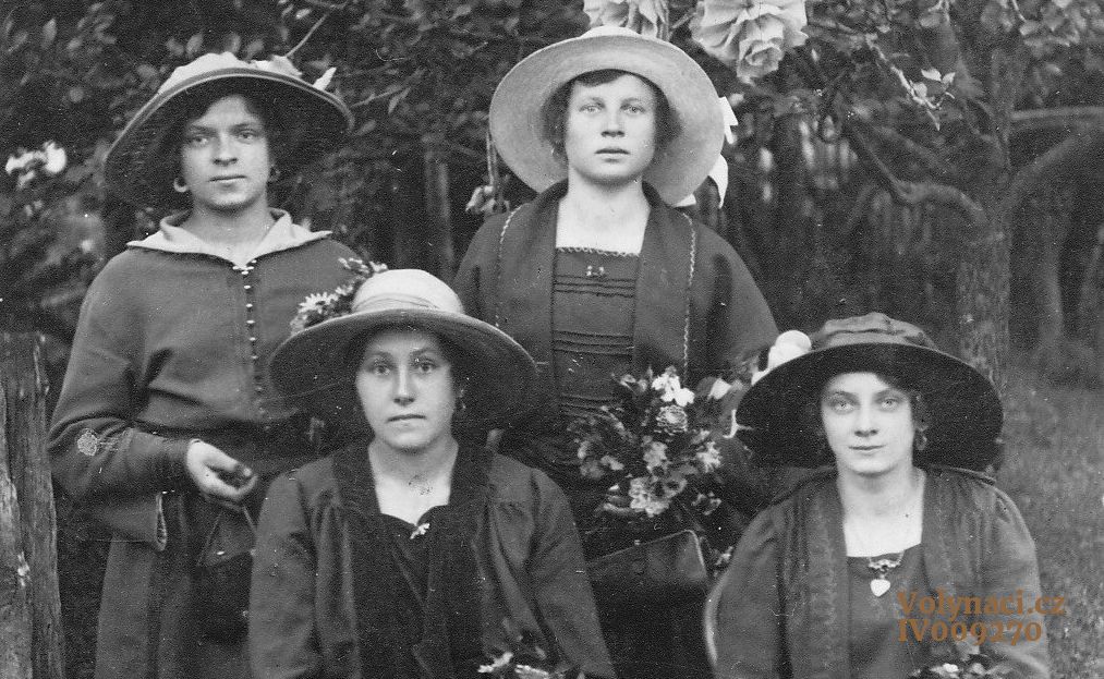 Kupičovské ženy s rakouskými vojáky za 1 sv. války 1917 - byli to Češi z Rakousko Uherské monarchie. Vlevo nahoře Marie Makešová.