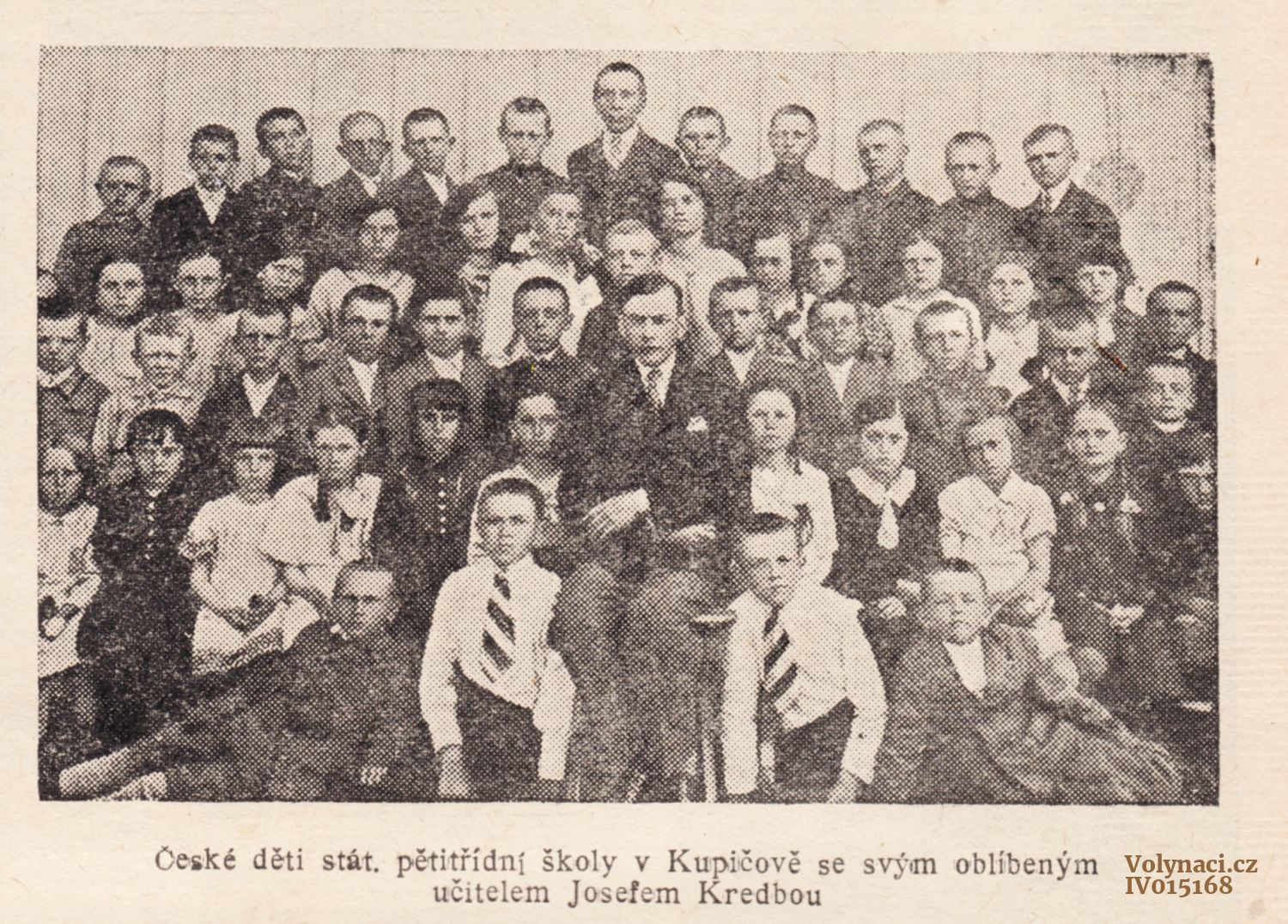 děti s učitelem J.Kredbou, který přišel do Kupičova z ČSR v r.1930