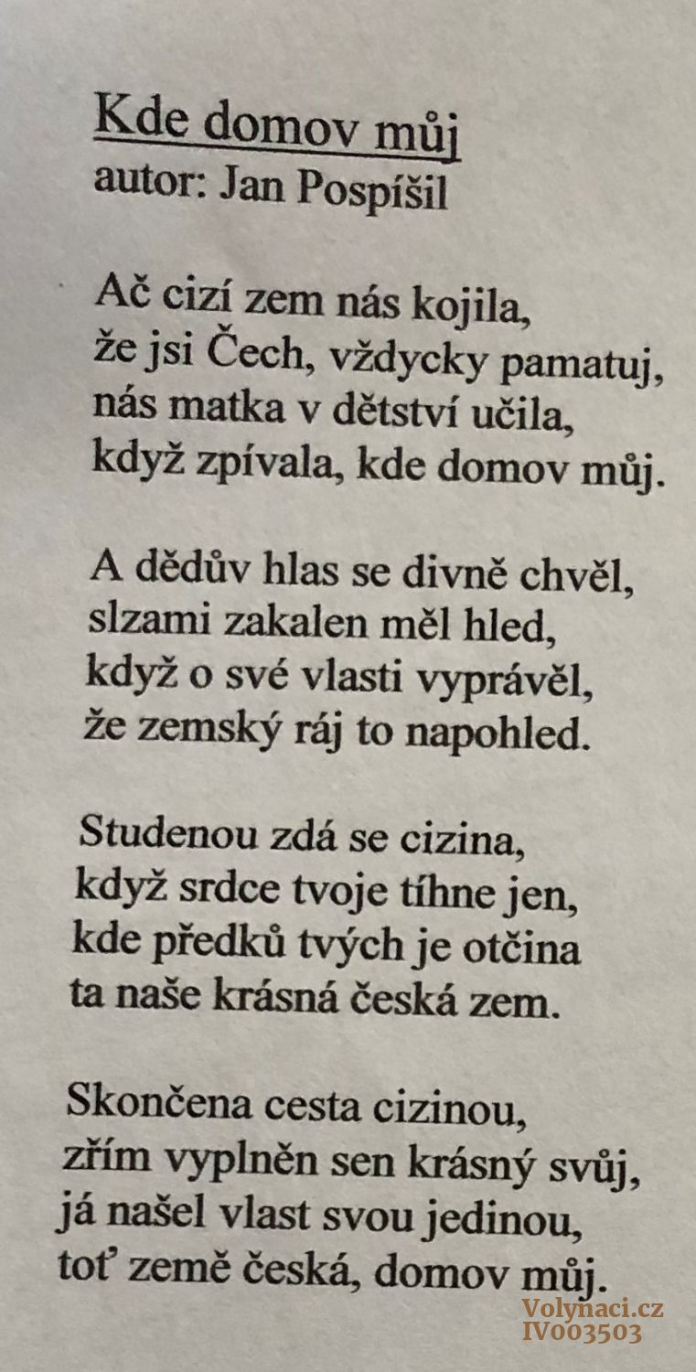 Zdroj: Národní archiv, fond Svaz Čechů z Volyně , karton 101