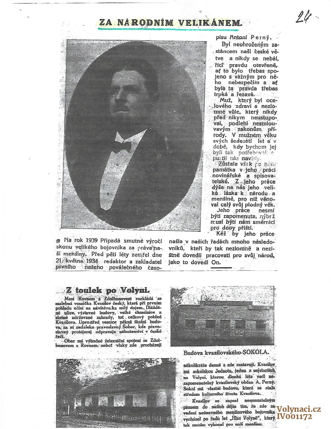 Vedením čítárny byl pověřen Čeněk Stránský. V posledních letech 19. století, Nemalé úsilí bylo věnováno v Kvasilově kulturní práci mládeže. Hrála se divadelní Související archiválie