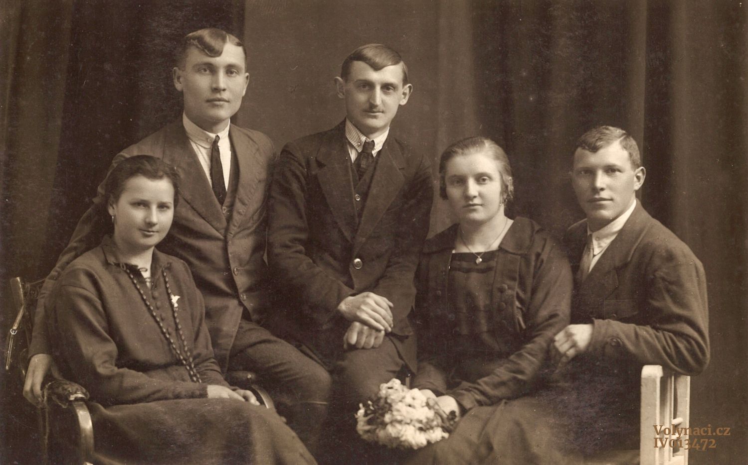Zleva doprava - vpředu babička Králová, Jiřina, babička Vlachová, vzadu - Olga a Vladimír Vlachovi