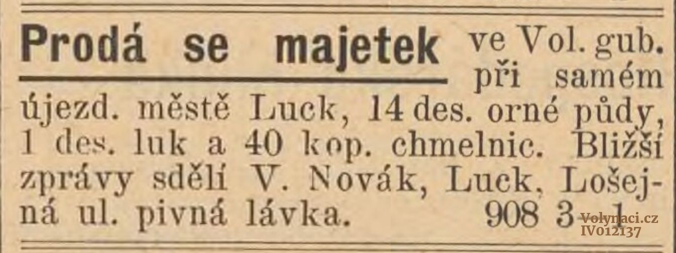 Jar.Liška si podal inzerát do Čechoslovanu, že přijme dělníky do své krejčovské dílny v Lucku.