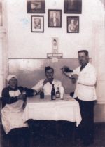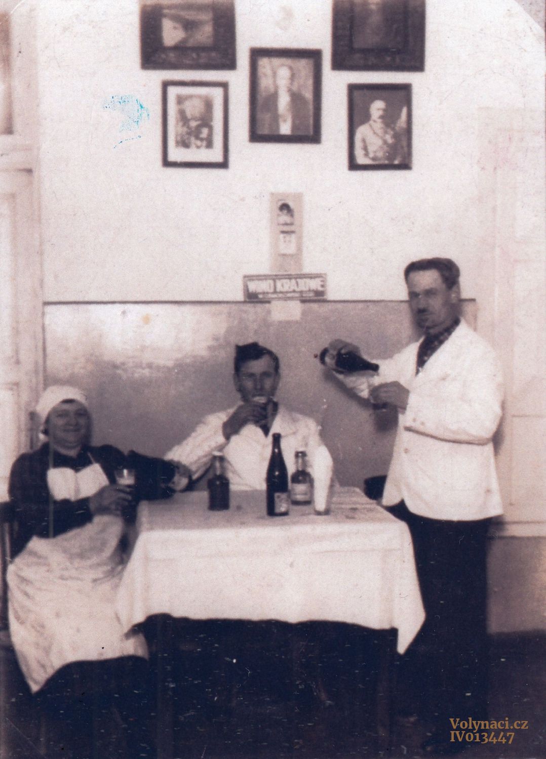 Josef a Marie Kyselovi se strýcem Alexandrem Zárybnickým ve své restauraci v Lucku, 30. léta