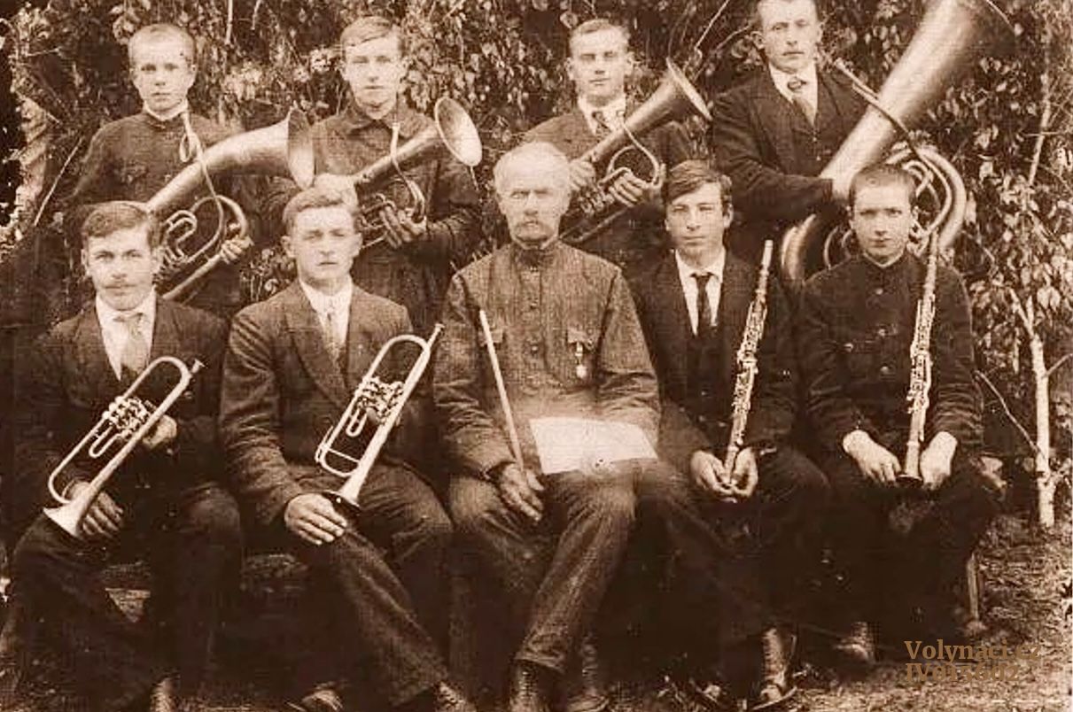 fotografie z r. 1923 - uprostřed s taktovkou kapelník Václav Barcal se svými žáky