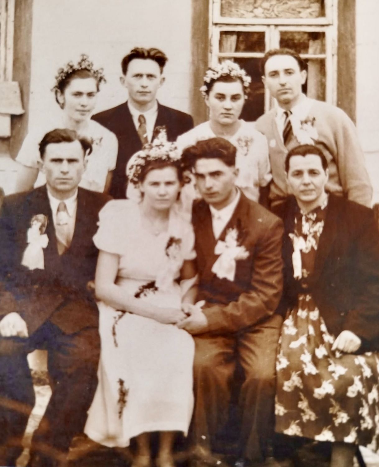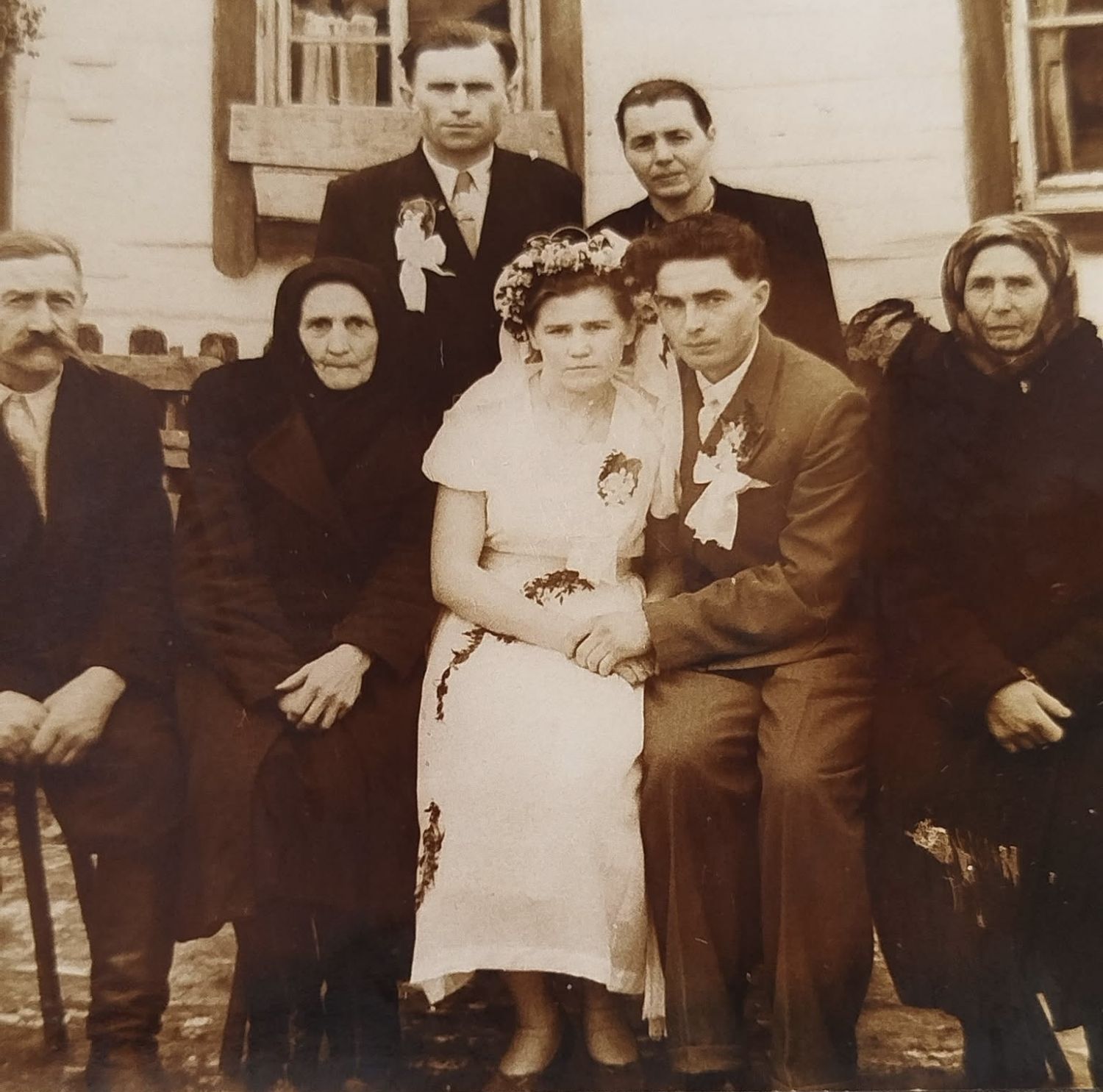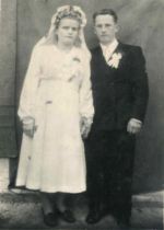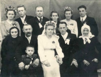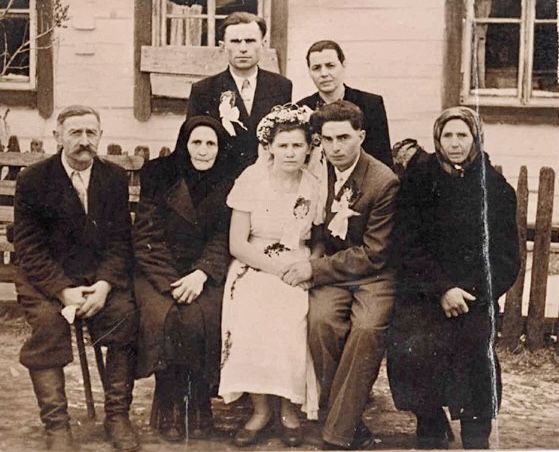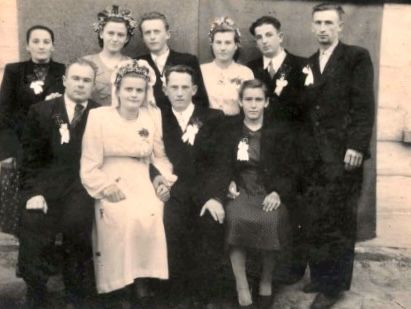 Nevěsta Evženie Vlačihová, ženich Vladimír Černý, u nevěsty rodiče – máma Marie Vlačihová, roz. Barcalová a táta Josef Vlačiha, nad nevěstou její bratr Boris Vlačiha.