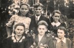 PV době ukončení sedmileté školy v Malé Zubovščině, 14.6.1947 Shora: Nina Tkačuk, Stepan Vasilenko, Věra Brabec Dolní řada zprava: Marie Kopecká, Oleksandr Gabriel, Lída Kučera