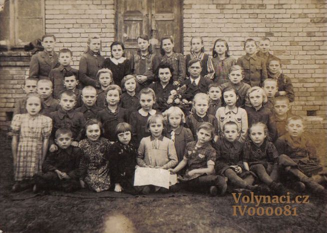 základní škola. Foto žáků 1945. Foto budovy 2011 |