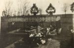 Hrob Gustava Bačovského, zde pohřben po převozu z hrobu z místa úmrtí (Kamenec Podolský), druhá zprava jeho manželka Aloisie, první zprava dcera Stanislava, zleva dcera Kristýna a vedle dcera Anna