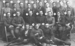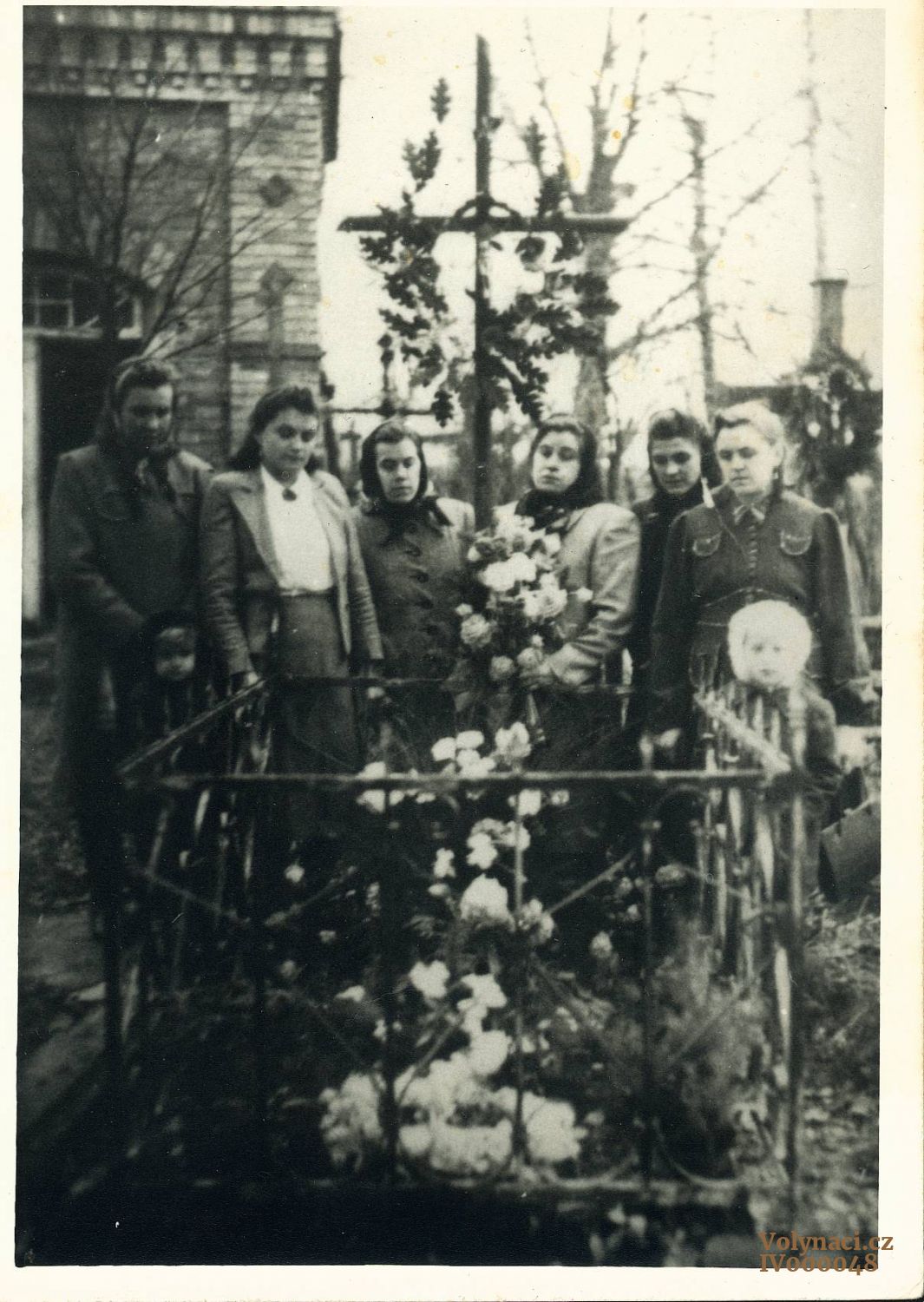 Zumr sedí, ženy Roušalovy, Stanislav Bačovský stojící 2 zprava - Boris Ukrajinec v kabátě