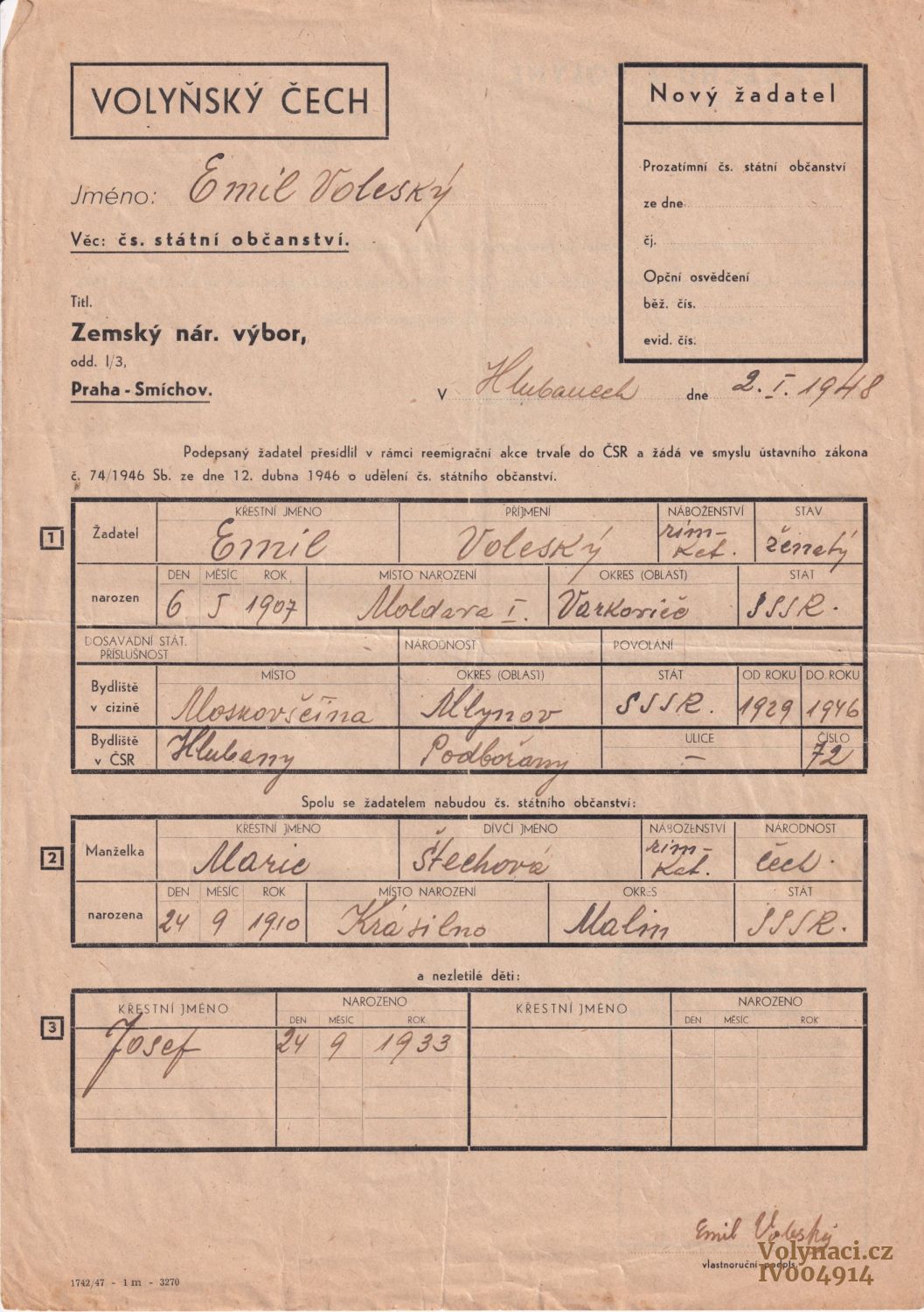 198-anketní lístek-Emanuel Dvořák-Ledochovka-Malín-Moldava