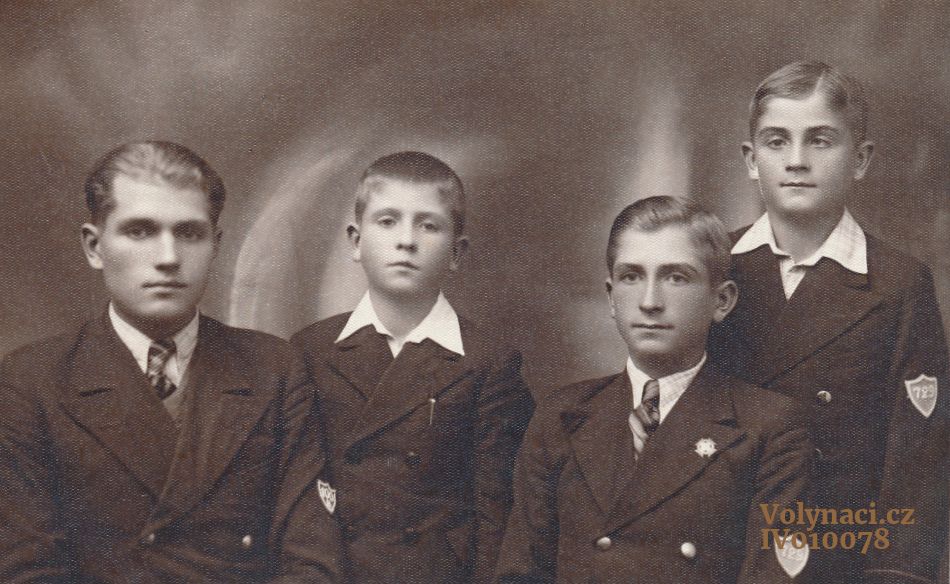 Josef je na fotografii vlevo nahoře, ostatní mladíci neznámí