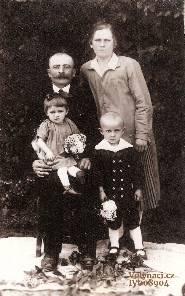 rodina - Jaroslav Konášek, jeho manželka Marie, stojící dítě syn Josef Konášek,dítě na klíně dcera Marie