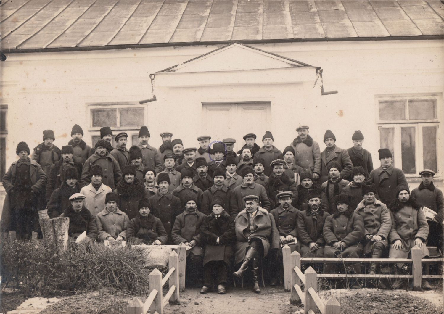 Starostové obcí na setkání gminy v Mlynově. (9 Čechů ostatní Ukrajinci a Poláci) rok 1932-5 Označený Šafr Karel, po jeho levé straně stojí Pokorný z Máslenky, za nimi stojí Antonín Valenta z Moskovštiny