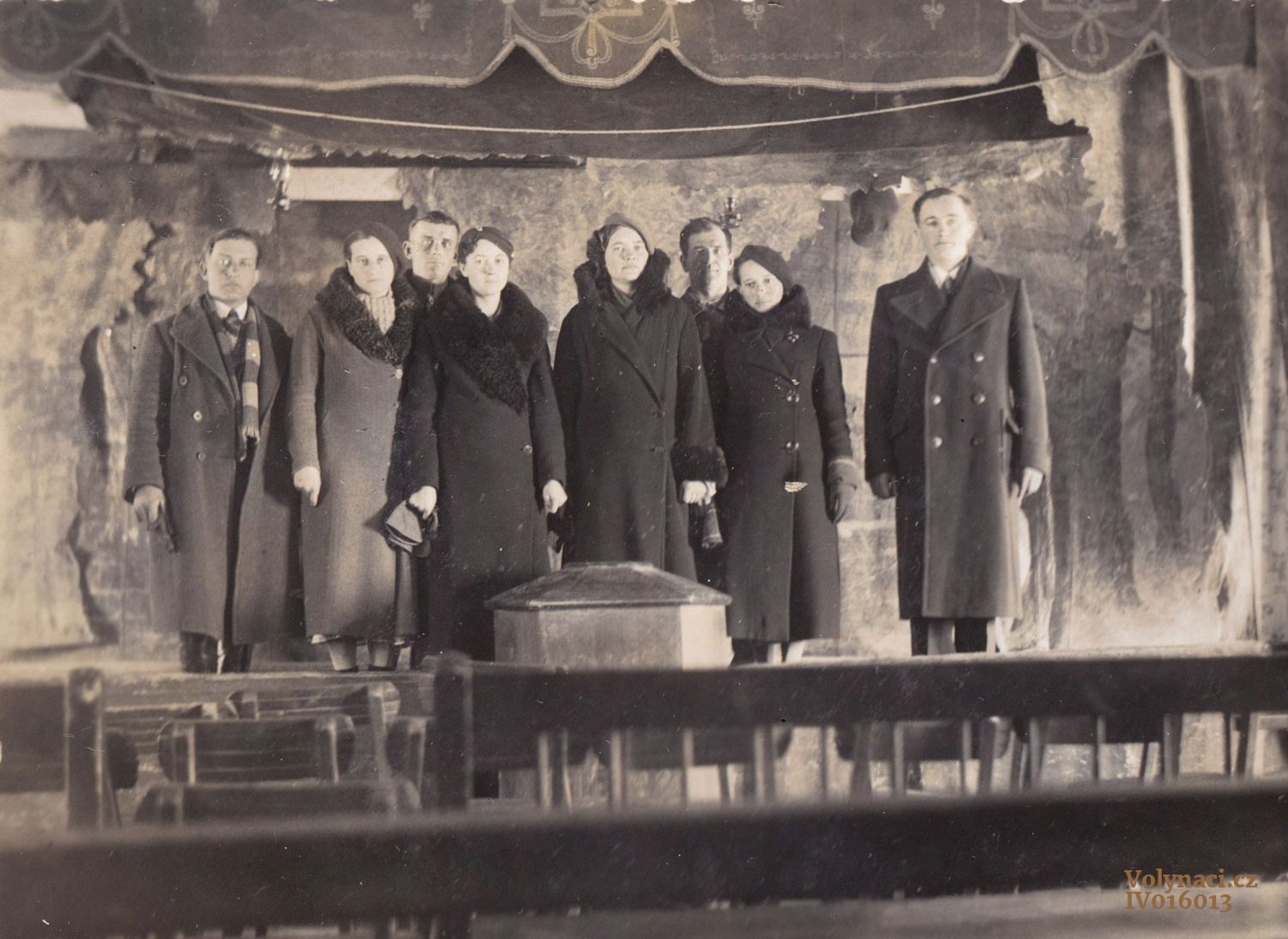 rodina Josefa Šebka na jejich usedlosti před vchodem do sklípku