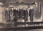 Václav Šebek jako 11 letý učedník u svého o 12 let staršího bratra Josefa Šebka (sedící), dále Vladimír Hnízdo a stojící Emil Vegricht.