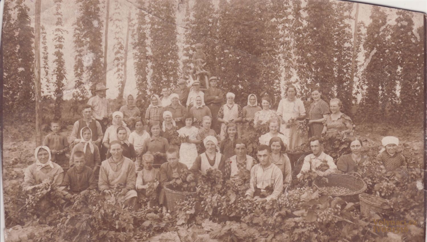sklizeň Chmele na chmelnici u Zahradníků