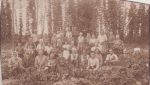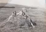 Svačina po sklizni obilí - v bílé sukni matka J. Zahradníka - v pozadí jejich chmelnice.