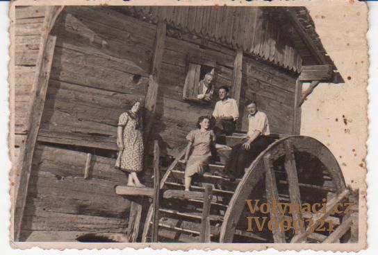 V okně otec Matouš a druhý Rasťislav Zahradník na mlýnském kole