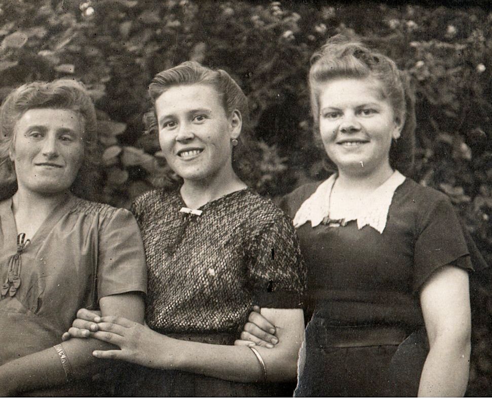 Uprotřed Mařenka Vostrá z Bojarky, vlevo je Běloruska Táňa, učitelka, vpravo je Táňa ukrajinka učitelka, co si namluvila za války staršího ruského majora