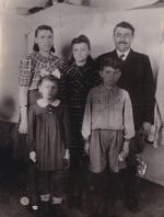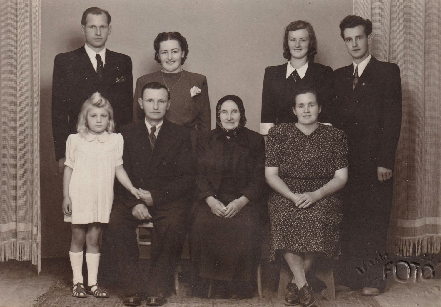 Rodina před domem na Bojarce (chybí otec a nejstarší bratr, kteří bojovali ve Svobodově armádě)
