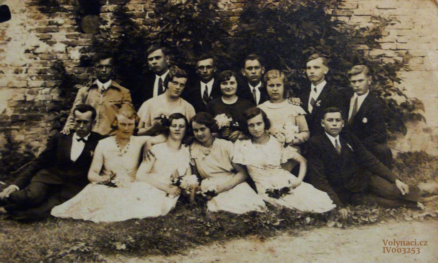 mladí v Semidubech - Anna Derflerová uprostřed v tmavých šatech