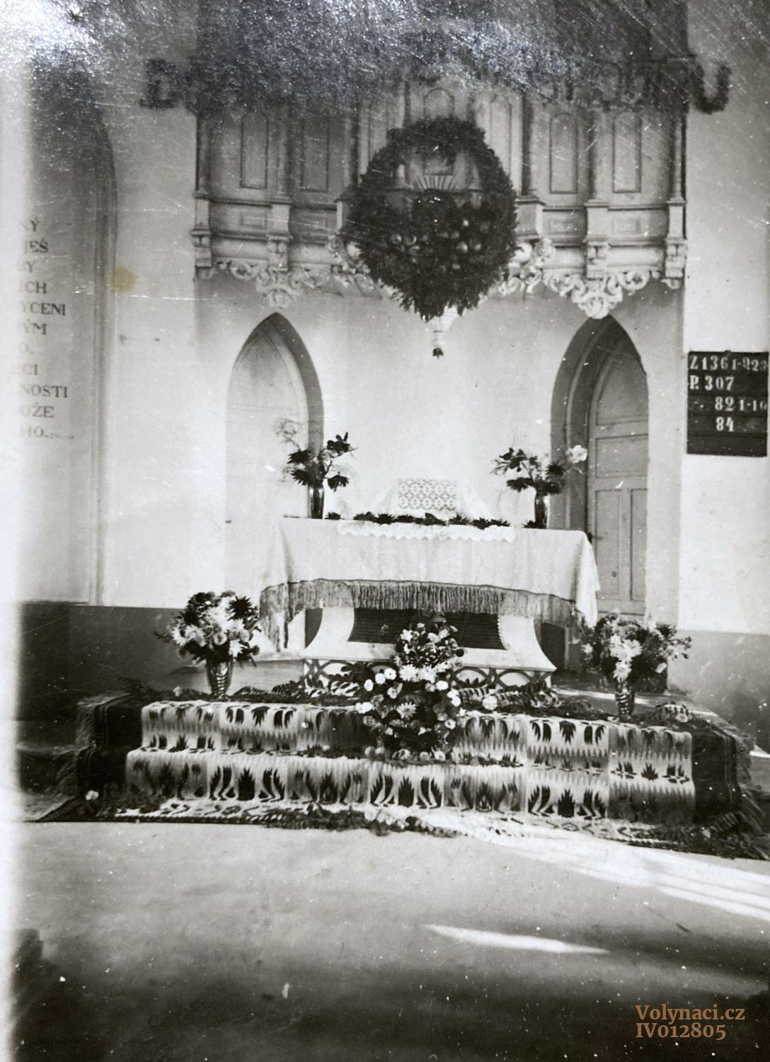 Interiér kostela v Českém Boratíně. Mobiliář převezený do Chotiněvsi v roce 1947.