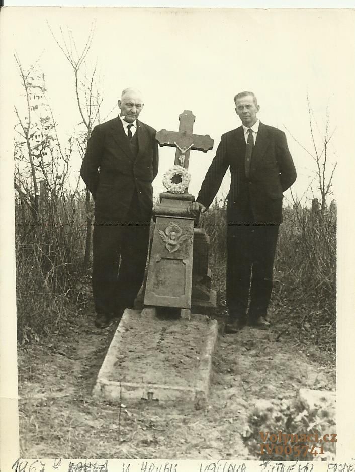 U hrobu Václava Žitného při návštěvě Vilhemovky v r. 1967. Česká Sklíň v době jeho úmrtíještě neměla svůj vlastní hřbitov a zemřelé pohřbívali do Sklíně ukrajinské.
