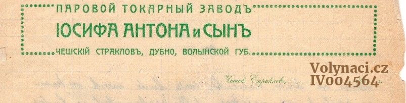 Hlavičkový papír "Parního průmyslového podniku Josefa Antona a syna"