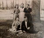 Vpravo nahoře Václav Karlovský, vedle něho stojí jeho dcera Nina, pod ní sedí jeho manželka Karolína a pod Václavem sedí jejich snacha, první ukrajinská žena Petra Karlovského, s kterou měl 4 děti, než odešel bojovat ze Svobodovou armádou.