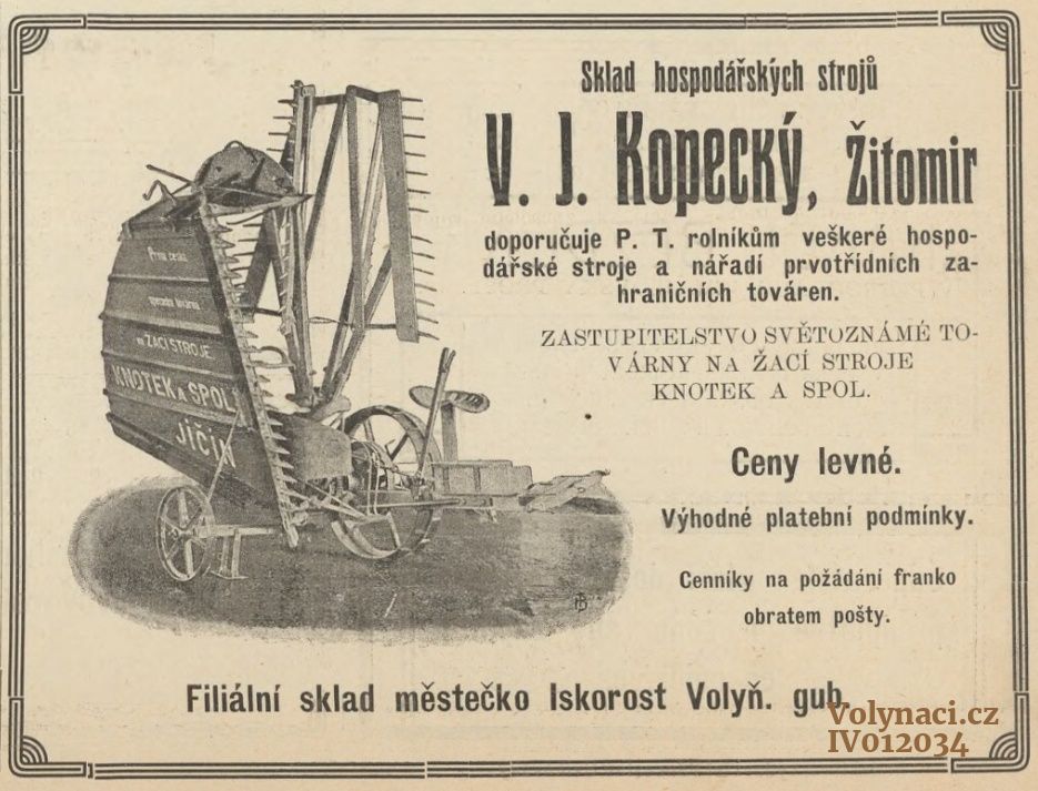 Sklad zemědělských strojů a nástrojů V.I.Kopecký Žitomir, Vilsko-Šossejná 39.