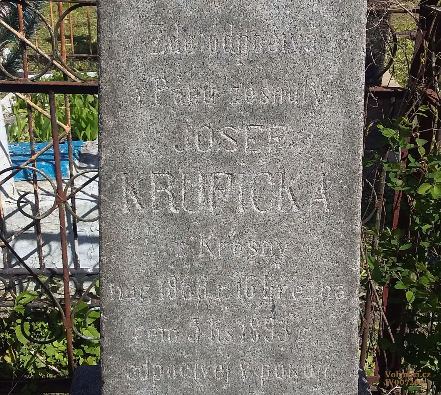 Náhrobek Josefa Pokorného na českém hřbitově v Žitomiru. Hřbitov v minulosti patřil k obci Krošna.