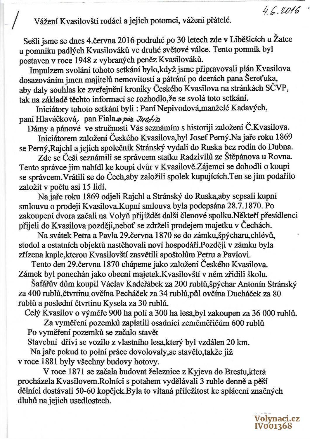 2.-2016 PROJEV J.FIALY NA DRUHÉM SETKÁNÍ KVASILOVÁKŮ 4.6.2016