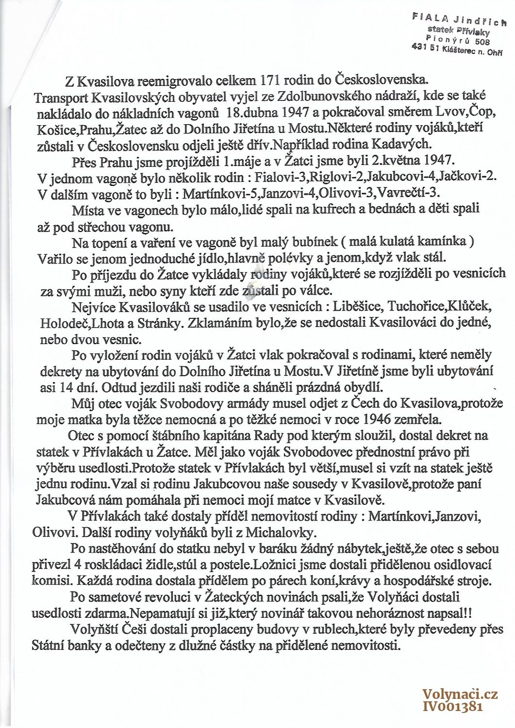 Příslušníci čs. jednotek za 2. sv. válkyMaksa (Maxa) Václav, Alexandr (5) (* 18. 10. 1895, † 9. 8. 1972)Perný Jaroslav, Antonín (15) (* 12. 2. 1906, † 13. 3. 1994) Tomáš Antonín, František (Alexandr) (* 1. 8. 1913) Ostatní? Helena, Mašindová (* 9. 3. 1924)Chladilová Jaroslava, Šeráková (* 1929, † 1999) Janovská Marie, Vaňhabrová (* 1894) Kotová Anna, Mašindová (* 1. 5. 1886) Mašinda Antonín (* 13. 6. 1910) Tomáš František (Alexandr), František (* 7. 4. 1877, † 25. 2. 1954) Vaňhaber Vladimír, Antonín (* 15. 5. 1892) Vaňhabrová Emilie, Vladimír (* 1. 1. 1922) Vaňhabrová Libuše, Vladimír, Tomášová (* 13. 2. 1919, † 2003) |