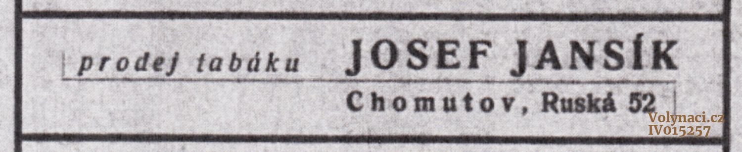 reklama na prodej tabáku Josef Jansík , Chomutov, Ruská 52