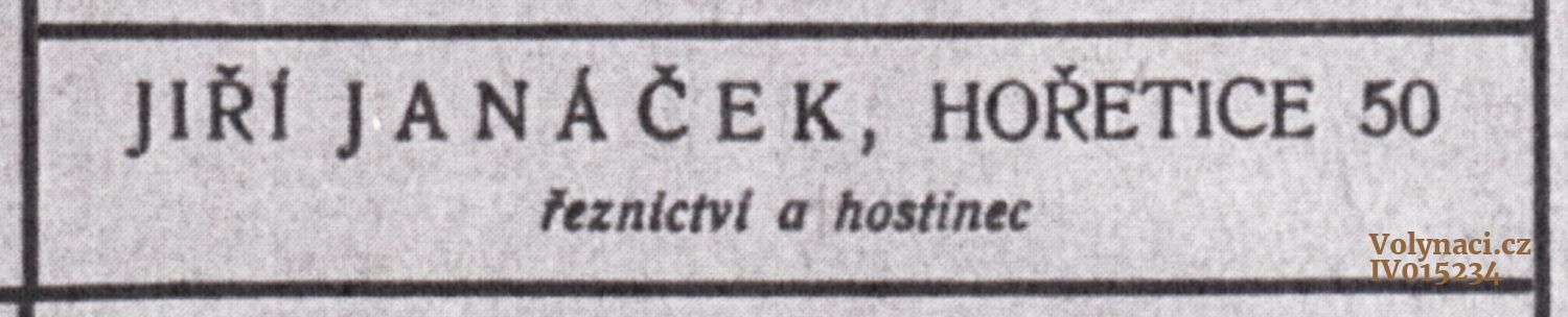 reklama z Věrné stráže na řeznictví a hostinec Jiřího Janáčka