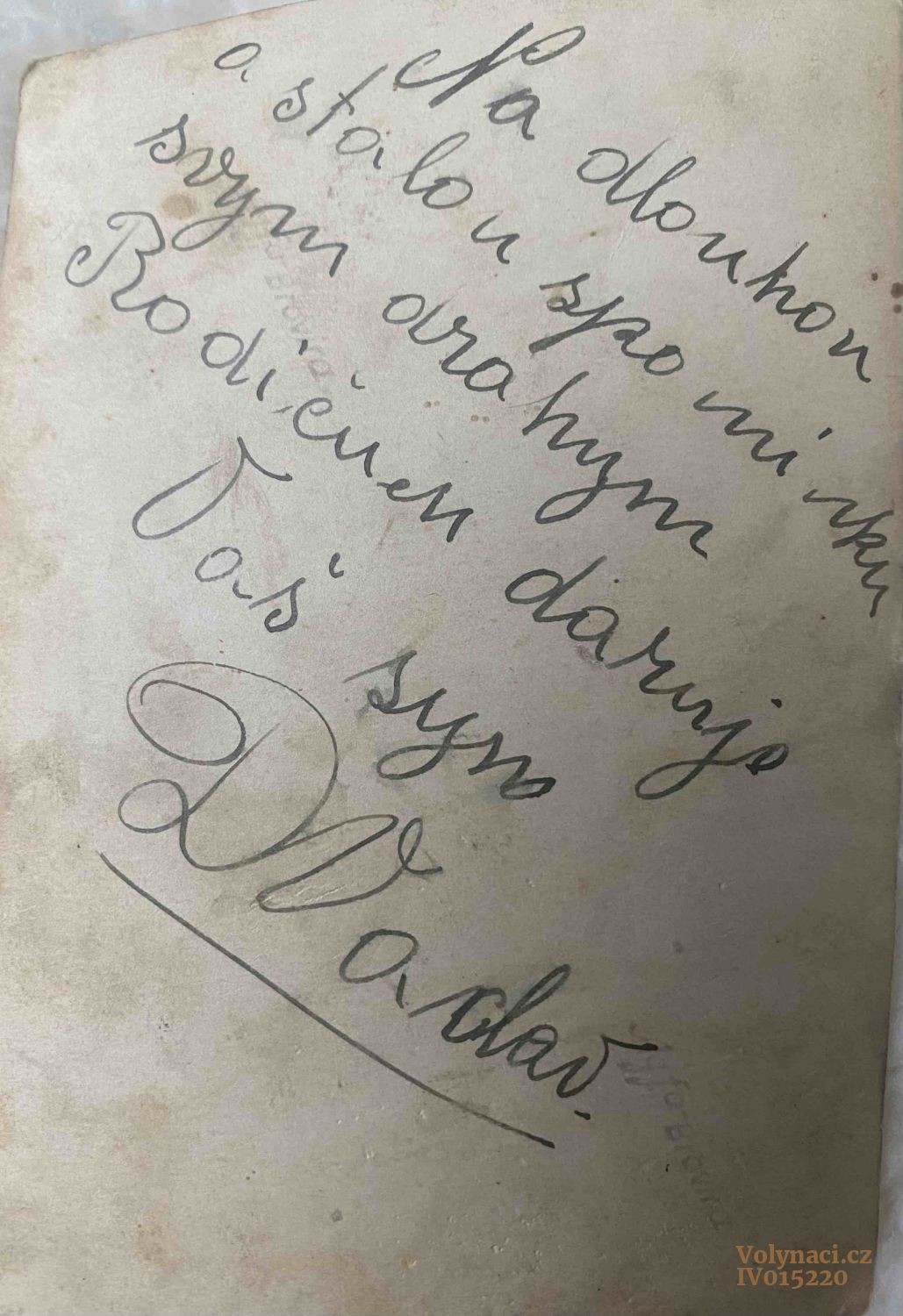Rub snímku IV015218, Rok: 1945, Zdroj: Archiv rodiny Dlouhých, Inventární číslo: IV015219