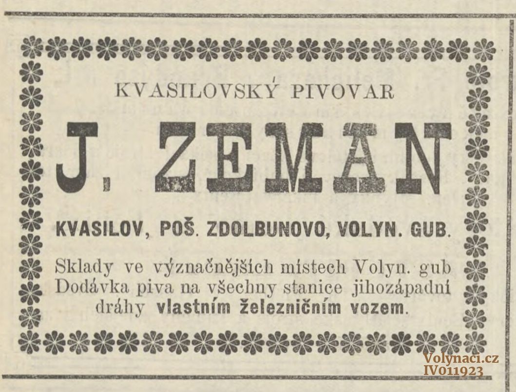 Dobrodružství dobrého vojáka Švejka, prostřednictvím jednoho z hrdinů, českého měšťana, požádal Švejka, aby pozdravil sládka Zemana (v té době a do roku 1939 pivovar v Kvasilově skutečně patřil Josefovi Zemanovi), když byl ve Zdolbunově . Související archiválie (1)