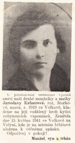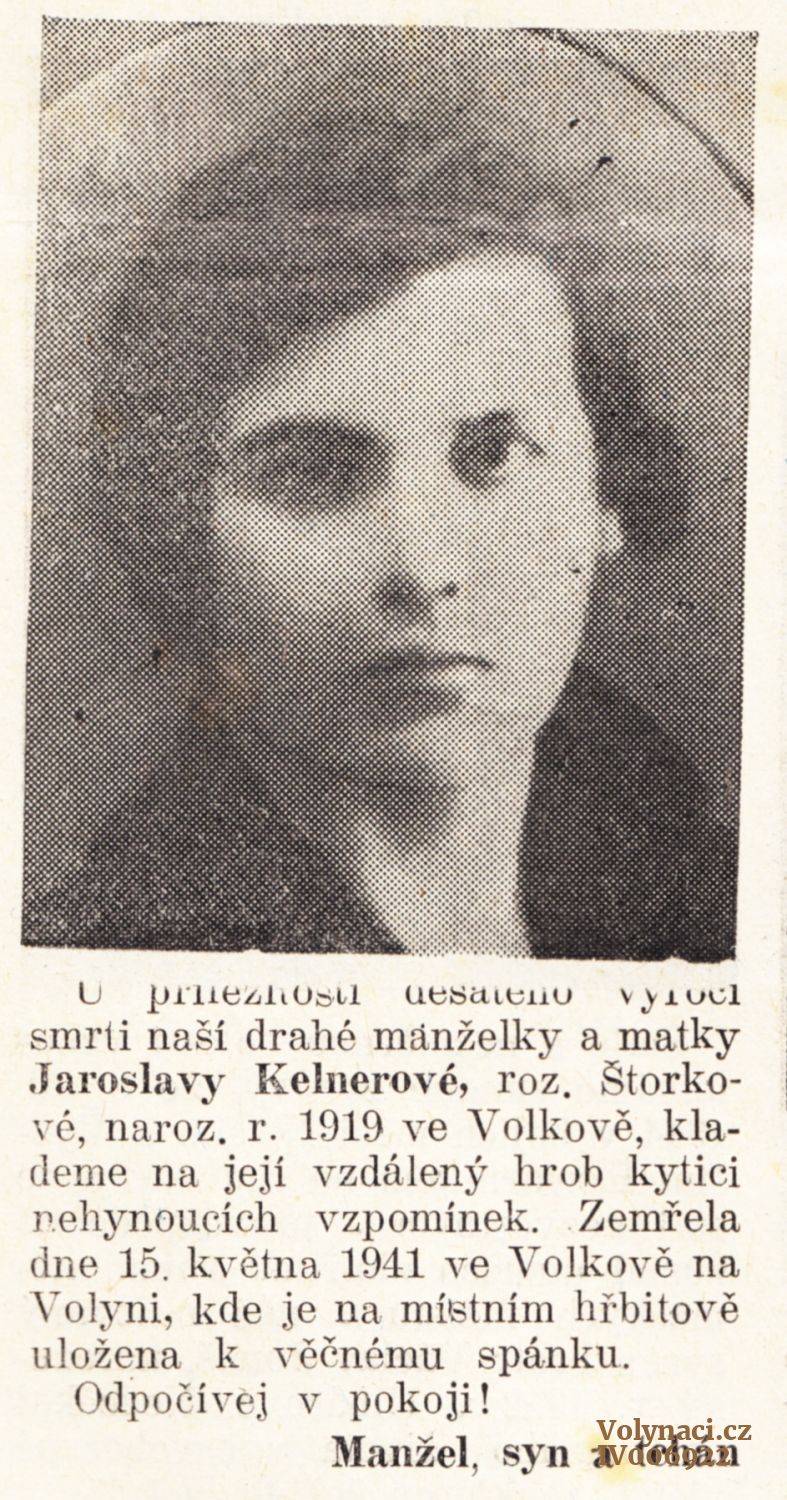 Jaroslava Kelnerová rozená Štorková z Vokova.