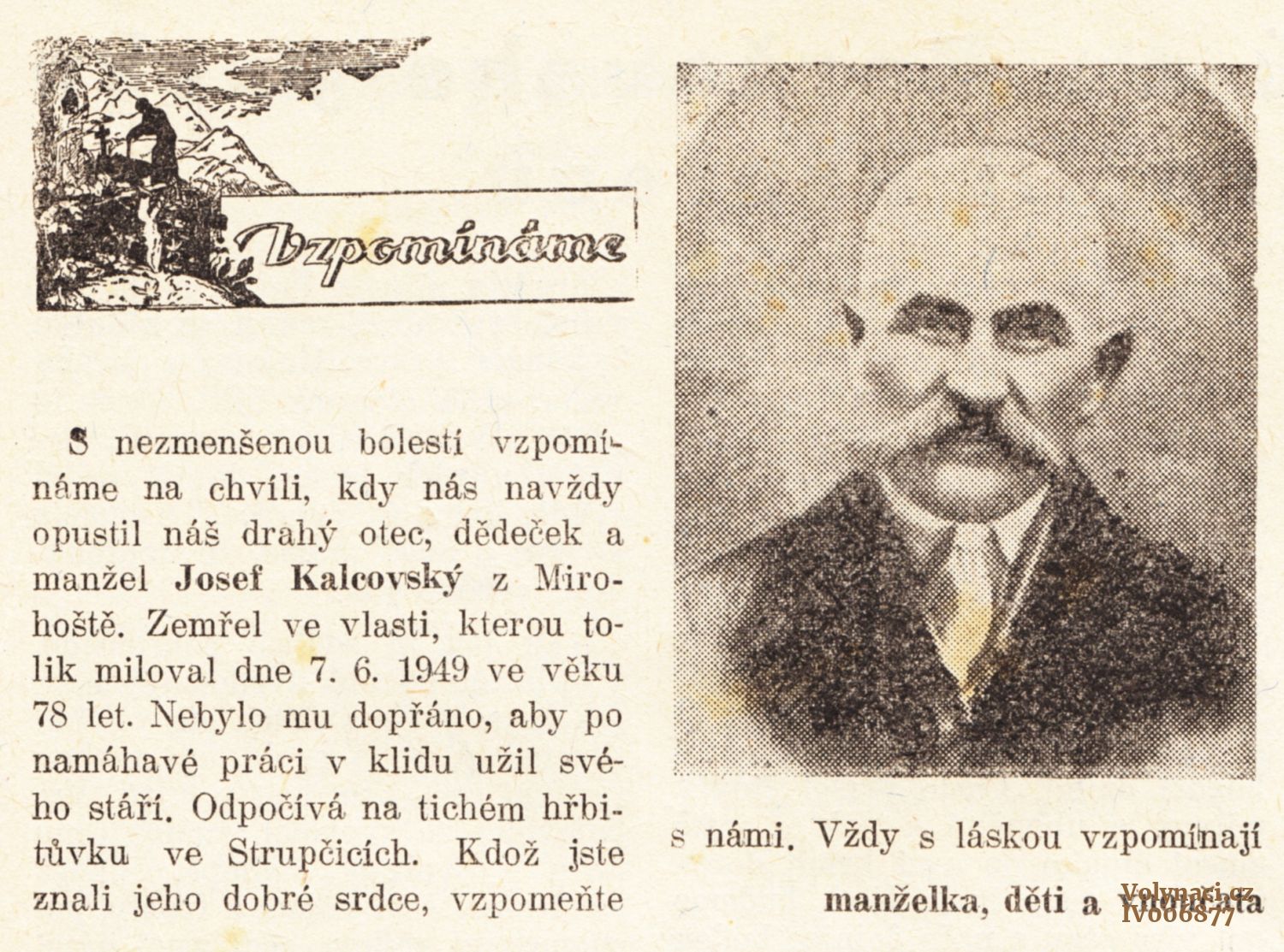 Josef Kalcovský z Mirohoště na Volyni
