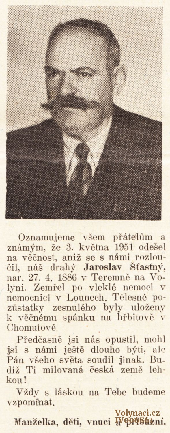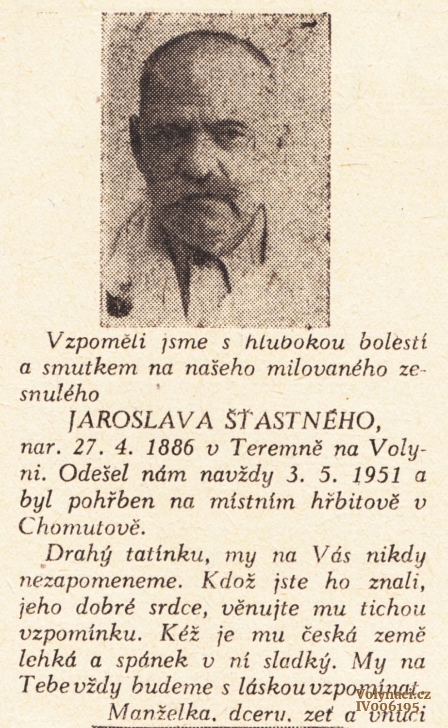 V roce 1952 byl pohřben na hřbitově v Chomutově.