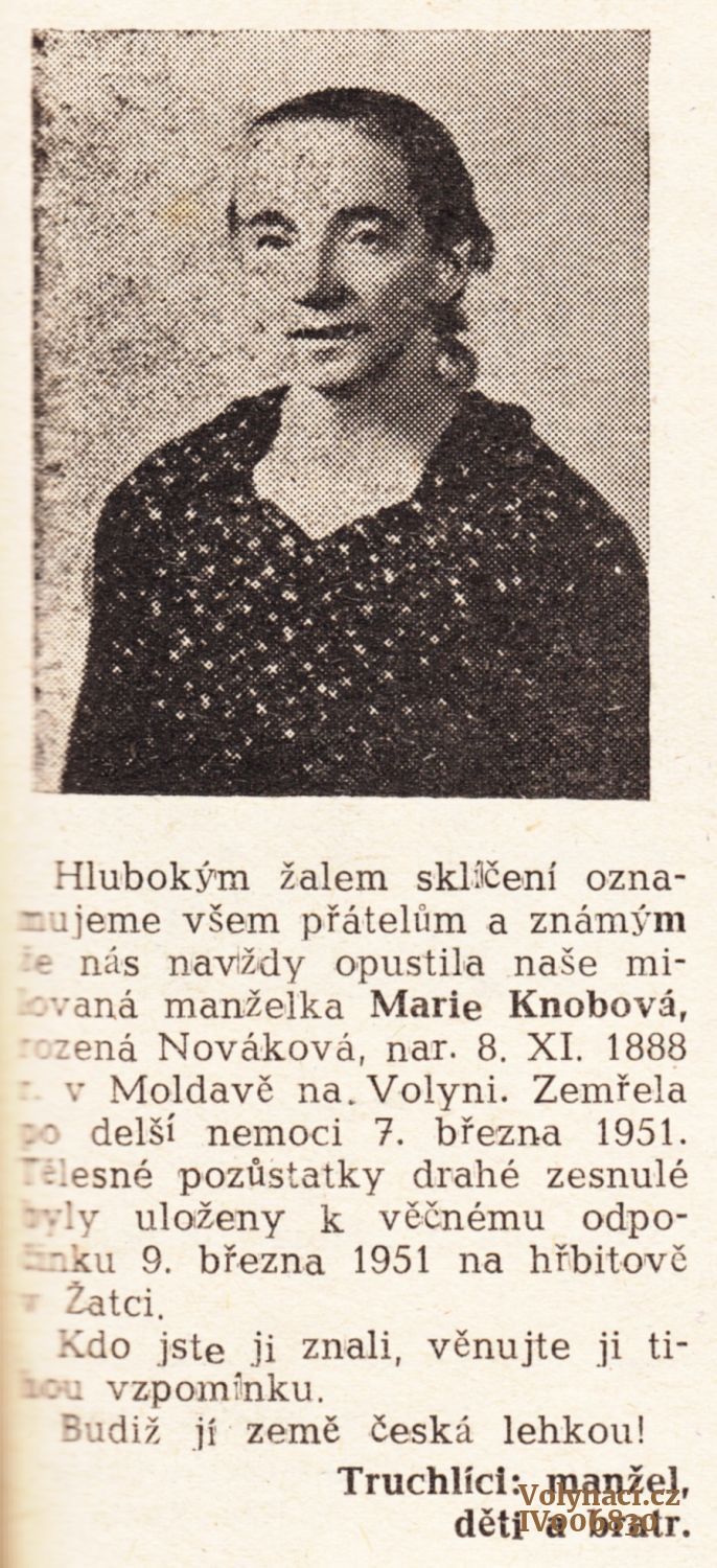 Marie Knobová roz.Nováková z Moldavy na Volyni