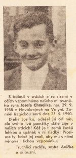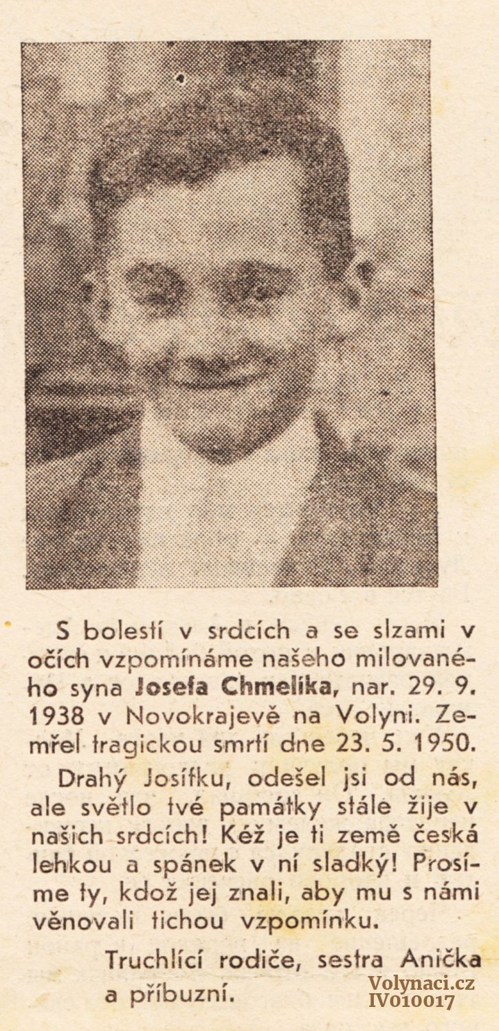 Nekrolog Josefa Chmelíka z Novokrajeva na Volyni.